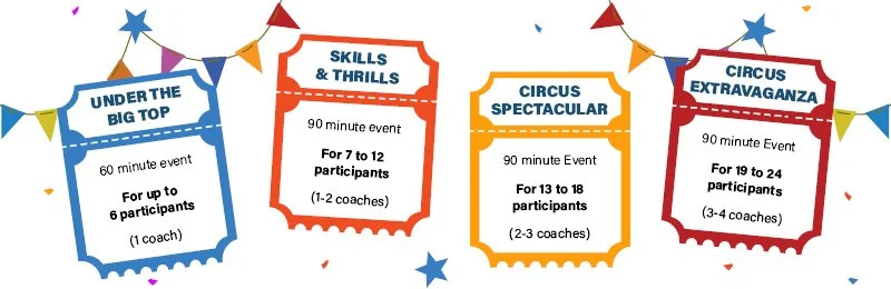 Cirque School events are a great way for guests to learn a medley of circus skills and can include the following: trapeze, silks, juggling, acrobatics, and more!